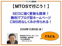 今年の夏にMTOSはバージョン4.21となり、ますます使い勝手がよくなった。ITコーディネータならこれを使わない手はない。ということで、ITコーディネータの勉強会(ITC1W)で遠田がMTOSの説明をすることとなった。