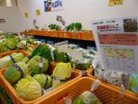 最近はスーパーも地産地消に力を入れている。地元の農家が作った野菜や果物をスーパー内で販売するしくみができつつある。このスーパーでは産直市場と称した特設コーナーを作ってあった。地元農家の野菜や果物は、JAなど系統ルートと違い、量がそろわないとか安定供給できないとかという特徴がある。それを弱点ととらえるより、「旬のものだから今これだけしかない」という独自性を長所としてとらえたほうがいい。