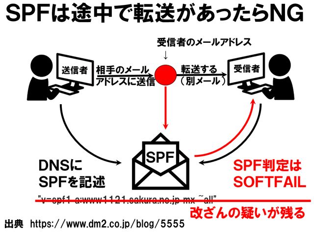 SPFだと転送があると警告表示されます