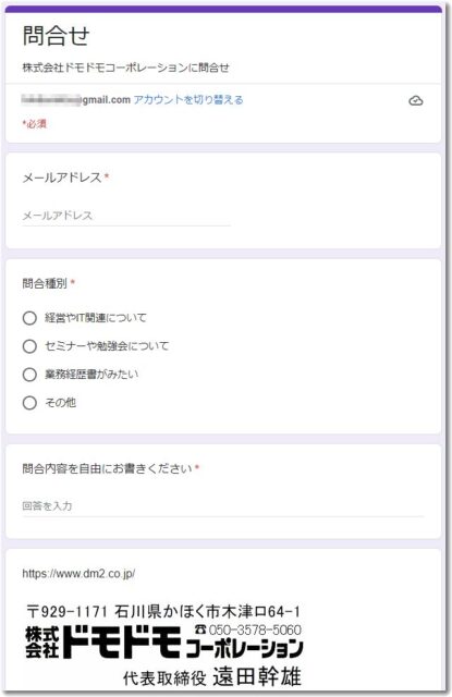 ・グーグルフォームでの連絡