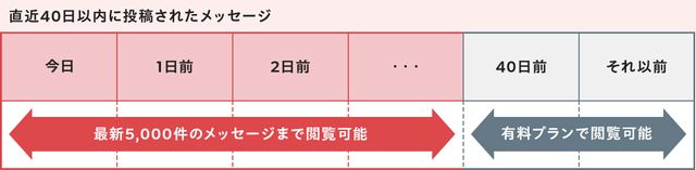 しかし問題はここです。直近40日以前の投稿が無料プランでは読めなくなるのです。