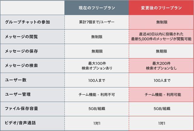 私はもう7年くらいチャットワークを使っていますが、ほとんどがグループ内での交流です。これがほとんど読めなくなってしまうということです。これを避けるためにはプランを有料化するしかなさそうです…。