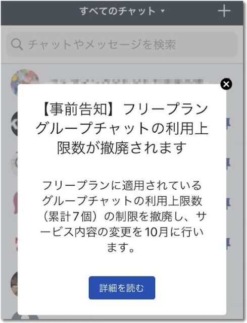 2022/09/06 – フリープラン グループチャットの利用上限数撤廃のお知らせ