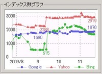 上記のグラフは、当ブログ(/)のインデックス数の推移を、ヤフー、グーグル、Bingの3大検索エンジンごとに折れ線で示した折れ線グラフである(グラフはGRCという検索順位チェックツールで表示できる)。ほぼ毎日1つづつ記事を書いているので、ゆるやかに1つづつ上昇するカーブを描きそうなものだが、そうではないことがわかる。