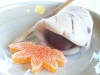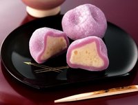 アヤメの花のような紫色のもちに五郎島金時の餡でつくられた「あやめもち」。石川県物産協会会長賞受賞、石川県商工会連合会優秀賞受賞、金沢屋での販売などと評価も高まっている。
