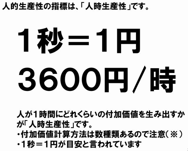 1秒に1円の付加価値を生んでいるとしたら、1時間では3600円の付加価値を生んでいるということです。