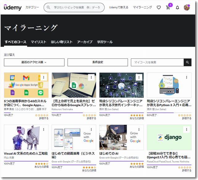 Udemyのマイラーニング