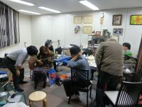 参加したのは8名。おいしくワインをいただいたあとも和やかなムード。ギターを弾いているのはファイヤーダンスを踊る美人の芸能人@ともぽん。
