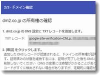 この画面で表示された「TXTレコード」をDNSに追記します。