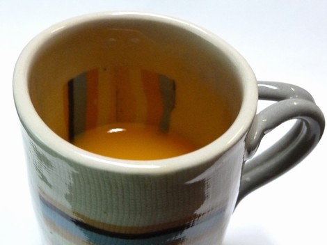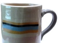 この写真のマグカップは、向瀬孝之氏のご自宅に訪問したときに出してくれた日常使いのもの。配色がきれいなので写真に撮らせてもらった。向瀬孝之氏は気さくで気取らない作家さんだが、陶歴を見ると日展や海外の賞など数々の受賞歴があった。