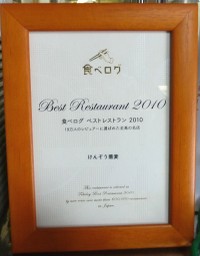 けんぞうは「食べログ」からベストレストラン2010の表彰けんぞうは「食べログ」からベストレストラン2010の表彰を受けていた。