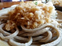石川県白山市の蕎麦屋「じょんがら」は唐変木の仲間たちの蕎麦打ちグループの1つ。同じグループだと蕎麦の傾向が似ているのだが、じょんがらには特別な蕎麦がある。十割そばの太麺である。この店の十割おろし蕎麦は太麺と細麺が選べるが、太麺がおすすめ。この太さは越前蕎麦よりも太く、箸より太い。しかし、ほどよい硬さでしっかりと味わいある太麺のおろし蕎麦だ。