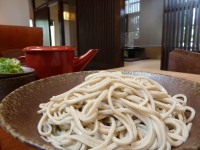Kyouyasiborisoba石臼手打ち蕎麦の越前そば。福井市内の「きょうや」には「しぼり」というメニューがある。辛味大根おろしの汁に生醤油を入れたダシでいただく太打ちのおろし蕎麦。遠田のお気に入りのメニューなので、大盛りでいただく。