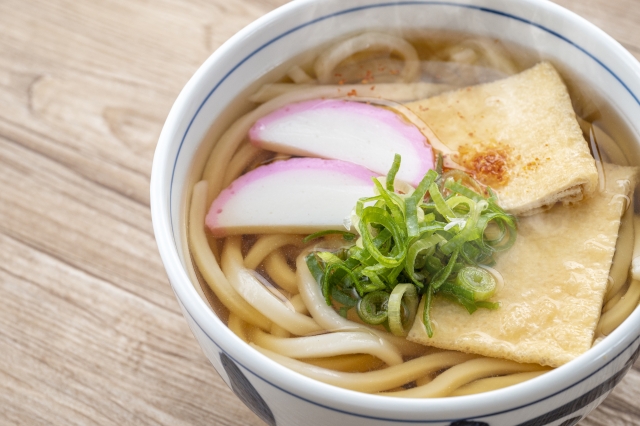 うどんで、代表的なのは「素饂飩(すうどん)」でしょう。具はネギを売れる程度で、シンプルにうどんを味わう食べ方です。カツオか昆布でダシをとり醤油味の温かい汁でいただくのが一般的です。