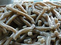 加賀製粉の生そば加賀製粉の生そばを使った。加賀製粉は福井県産の蕎麦を石臼で挽いた越前そば粉を製造販売している蕎麦粉製造業だ。プロの蕎麦屋やそば打ち名人大会に出場するそば打ち好きの人たちが好んで使うような蕎麦粉を提供している蕎麦粉のプロが加賀製粉だ。この生蕎麦も蕎麦の本来の風味が凝縮された旨みがぎっしり詰まっている。