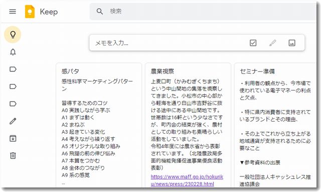 それがGoogleの「Keep」です。これは超絶便利なのでおすすめできます。