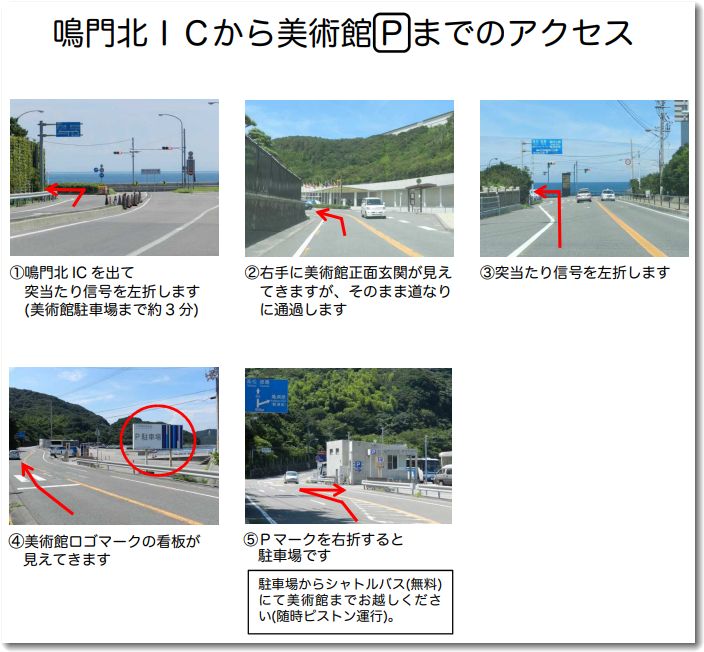 結局、P1駐車場に駐車するのが大正解だったようです。P1駐車場からは5分きざみくらいの感覚で美術館前まで無料シャトルバスが運用しています。さすが年間65万人も来場する観光施設はすごいですね。