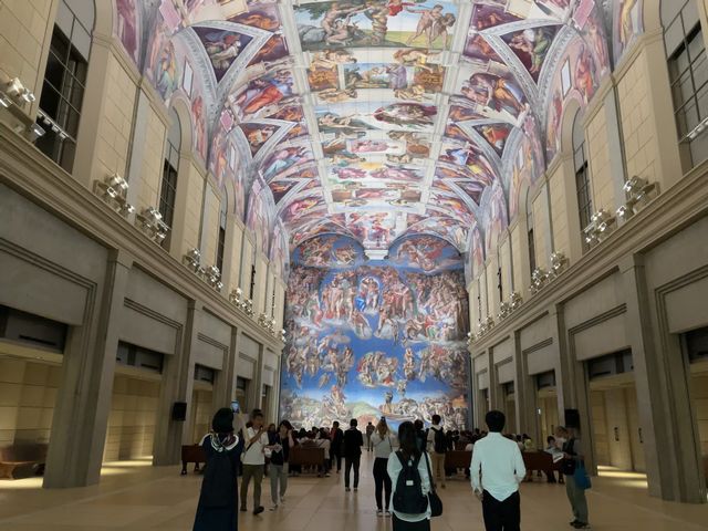 ヴァティカンのシスティーナ礼拝堂の天井画と正面壁画「最後の審判」を再現したシスティーナ・ホールです。これには圧倒されました。彫刻家として有名なミケランジェロが描いた壁画です。最終的な完成までには数十年を要したようです。