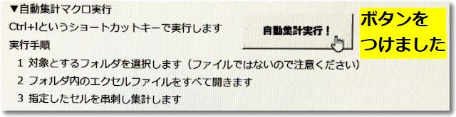 マクロの実行はショートカットキーを割り当てることもできますが、ボタンのほうが便利ですね。