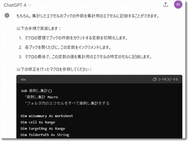 なお、このマクロはChatGPTで対話しながら作成しましたので割と簡単に作ることができました。