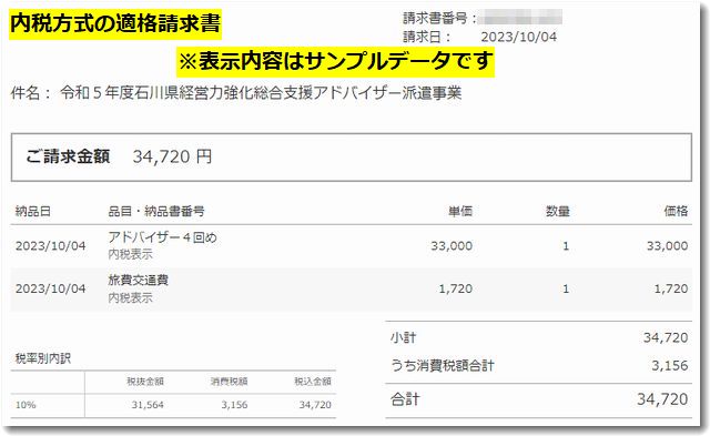 今後、当社から送付する適格請求書は内税方式とさせていただきます。