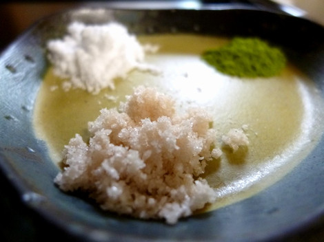 かつおが苦手な遠田は、ダシなしでオーダーしたら、代わりに三種の塩をつけてくれた。これは天ぷら料理のときに出す塩のようであるが、なかなかうれしい気配りである。蕎麦宮川は接客の評判もいい。