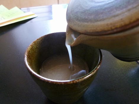 蕎麦湯はどろっとした濃厚な味わい。小さめのポットで蕎麦湯用の器で出してくれる。