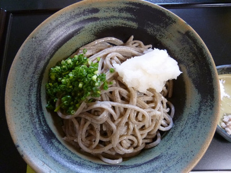 おろし蕎麦は太麺の蕎麦で、大根おろしは辛味が二種から選択できる。辛い方の大根おろしを頼んだが、初夏ともなると大根おろしはそれほど辛くない。(実は細打ちでも注文できることが後でわかった