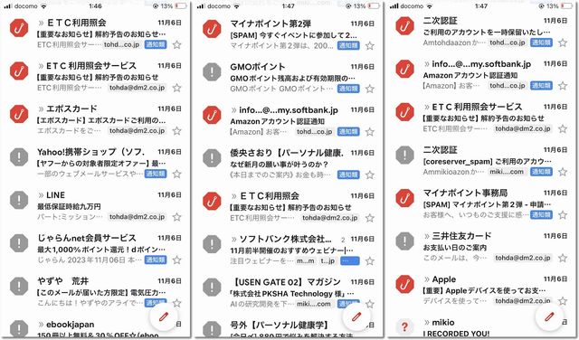 どんどん増える迷惑メールには頭を悩ませますね。多い日はざっと100通を超える迷惑メールが届きます。その中には詐欺メールや不正なメールが多数あります。この中を確認しなければならないときは、ぞっとしますね。