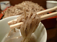 更科藤井の蕎麦メニューは5種で、「二八蕎麦」、「荒挽き蕎麦」、「十割生粉打ち蕎麦」、「御前更科蕎麦」、「季節のかわり蕎麦」とバラエティに富んでいる。今回は「荒挽き蕎麦」を注文した。更科藤井の蕎麦は細くコシがあり喉越しがよいのが特徴だが、荒挽き蕎麦は少し太めで喉越しよりも蕎麦本来の味わいを感じさせてくれるように打ってある。大根おろし汁と塩で食べたが、この相性もよい。また食べたくなる蕎麦が荒挽き蕎麦だ。