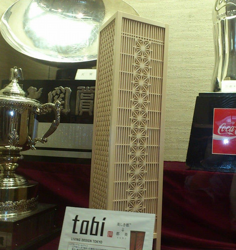 この組子行灯は富山県の株式会社タニハタが「東京都家具工業組合」からの依頼で製作協力、製造に関わっており、社長の谷端氏もNHKテレビの表彰式のときに映っていた。
