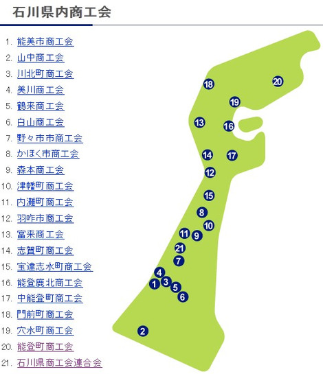 石川県内の商工会は、商工会議所がないエリアにある。