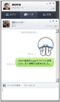 ただし、パソコンで登録したLINEのメールアドレス情報は残っているので、ネクサス7であらためて友だち登録をして、トークを流すと、すぐにパソコンでも流れてきた。パソコンで再設定をする必要がないことがわかっただけでも収穫である。