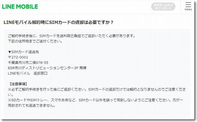 LINEモバイル 返却窓口