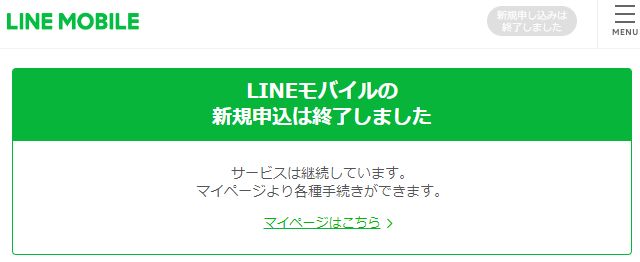 LINEモバイルはすでに新規申し込みを終了しています。