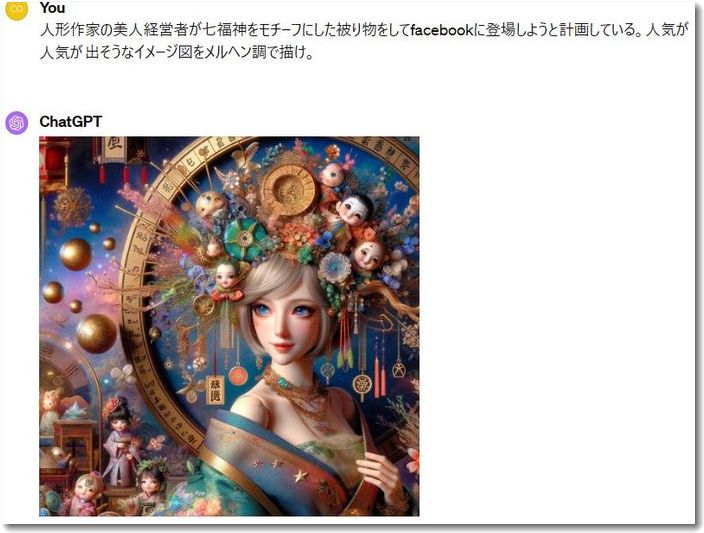 また、本日参加してくれた人形作家さんがZOOMでのオンライン会議で、自分やミニチュア人形をアピールするためにどうすればいいかについて、参加者からそのイメージをChatGPTで生成してみようということになりました。