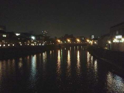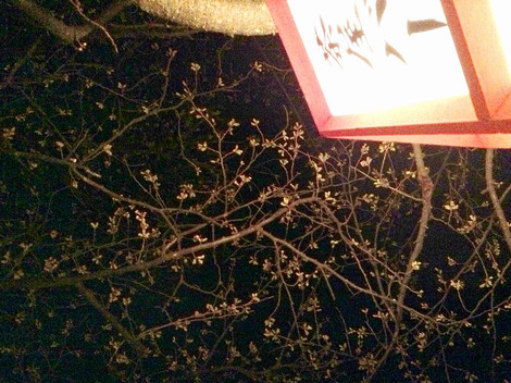 主計町ではぼんぼりも点灯し花見シーズンを感じさせてくれる。(昨夜)