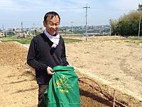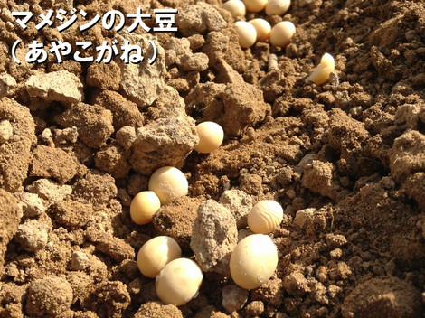 マメジン自由が丘の畑で遠田幹雄マメジン自由が丘の畑で今日は大豆の苗作りを行なった。今年はマメジン大豆と輪島のまるやま組の青大豆の二種を育てることにした。マメジンの種豆は毎年自分たちで育てている大豆。いまや有機農業で有名になった金沢大地の井村辰二郎さんから譲ってもらった有機大豆のあやこがね。まるやま組の大豆は輪島在来種の青大豆で、きなこなどに加工するとおいしいという評判だ。夏以降になればどちらも枝豆でご相伴にあずかることにしょう。今から収穫の秋が楽しみである。