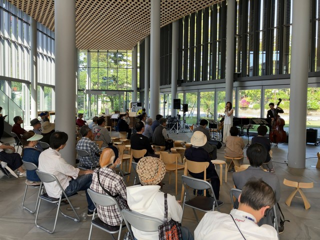 金沢市役所の第二庁舎会場は、室内での開催になっていました。この会場ではドラムセットがないのでしっとりとした曲調を演奏されています。なかなか染み入るような感じで音楽に浸れるのがいいですね。