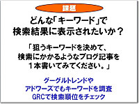 検索にかかるブログ記事を1本書いてみようという課題を出した。狙うキーワードを決めて、そのキーワードを中心的なテーマとした長文の記事を書いてみようということである。長文とは何文字からかというと最低でも600文字で、可能ならば2000文字程度と設定した。