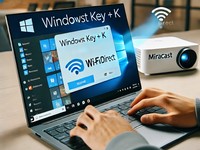 パソコンの「Windowsキー」と「k」というキーを同時に押すと、プロジェクタや大型テレビに接続することができます。これは「Wi-Fi Direct」という技術規格に対応しているからです。「Wi-Fi Direct」はWi-Fiの周波数帯域を使いパソコン端末とプロジェクタなどを1対1で直接接続するための技術規格で、最近の機器にはほぼ搭載されているようです。