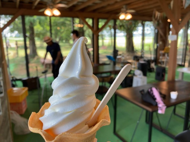 夢ミルク館はソフトクリームがおいしいと評判です。真夏のこの時期はソフトクリームを買うための行列が絶え間なく続いています。多い日はなんとソフトクリームが1000個以上も売れるそうです。