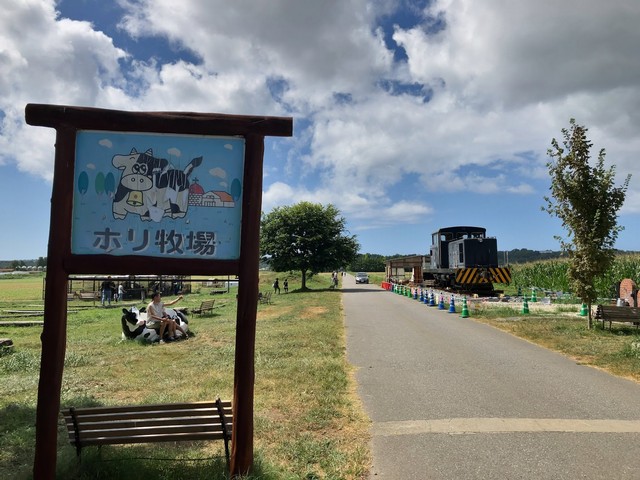 ホリ牧場の看板があります。小動物もたくさんいるのでちょっとした動物園的な雰囲気もあります。