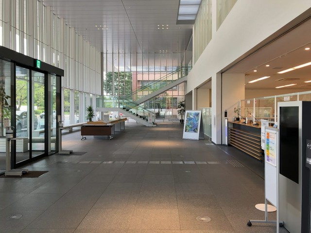 金沢商工会議所のフロント左手奥には大きなホールがあります。そのホールが交流会の会場でした。