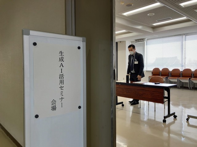 会場の入口には「生成AI活用セミナー」という立て看板がありました。