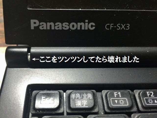 reiwa1sx3kowareta.JPG今日5月1日から元号が「令和」になった。その記念すべき初日にパソコンが壊れた。メインで使用しているノートパソコン(レッツノートSX3)を掃除しようと思い、ディスプレイを折りたたむ可動部分に溜まっていたホコリを取り除こうと、クリップの先でツンツンしていたら、突然に電源が切れた。