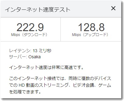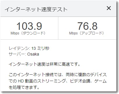 ノートパソコンで通信速度を測定したところ以下のような結果でした。