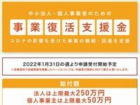 2021年11月から2022年3月までの売上が過去と比較し3割以上減少した場合に支給されます。地域や業種に関係なく、非法人にも支給されるので、コロナ禍で業績が厳しい中小企業者には朗報ですね。支給は来年(2022年)になりますが、制度の概要や支給額の計算式などは公開されています。