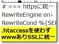ドメインを常時SSLにしてwwwの有無を統一するという設定は「.htaccess」を使うのが一般的でした。