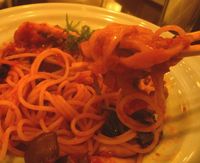 ベジタリアンのための菜食定食があるレストランに入った。スパゲッティの中から「いろいろ野菜のトマトソース」を注文。レンコン、ナス、アボガド、など野菜がたっぷり入っている。フォークではなくお箸で食べるパスタだ。メニューの記述だが、スパゲッティ:「有機栽培の小麦を原料にしたオーガニックスパゲッティ」、菜食定食:「美肌効果」となっている。